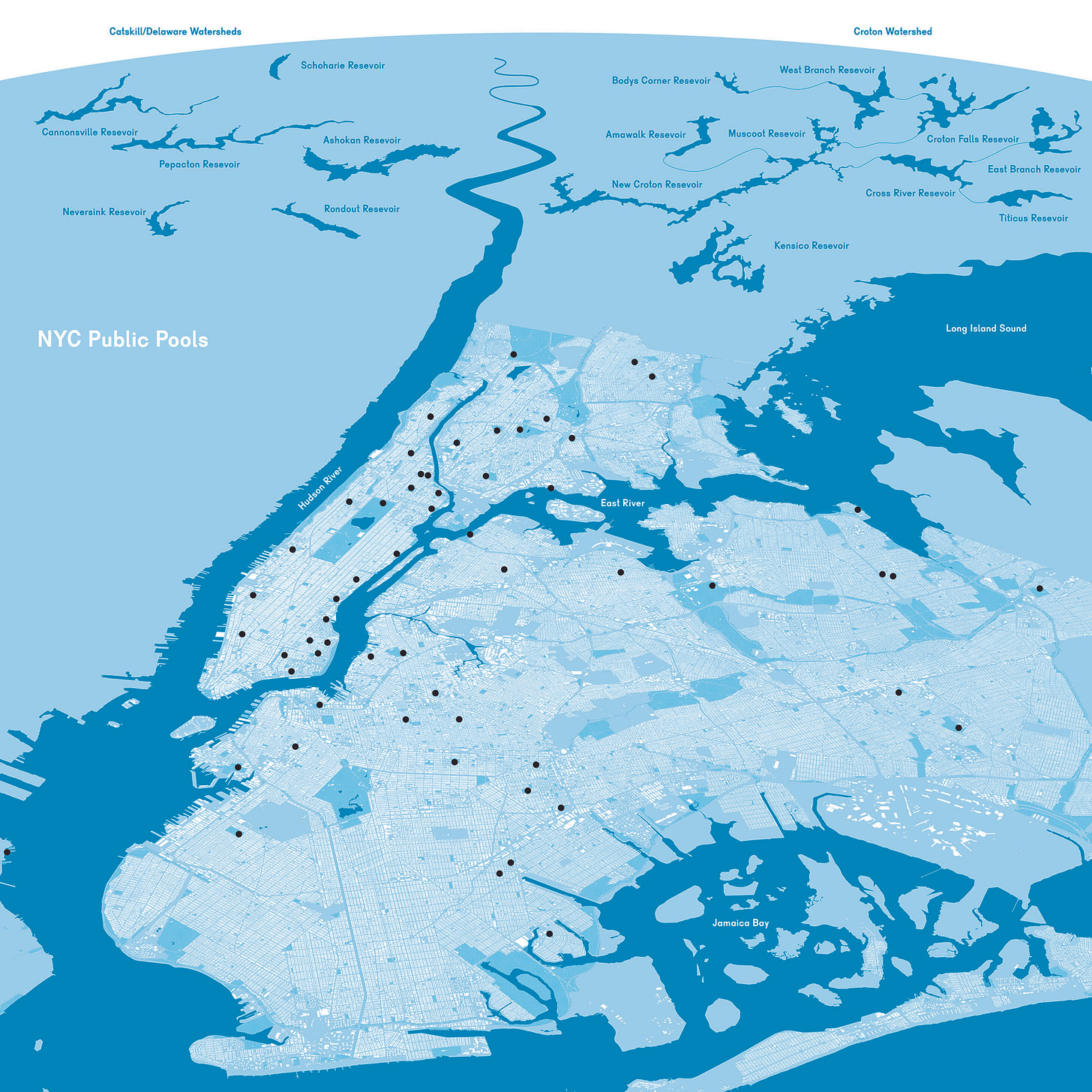 On the first Sunday after Labor Day, as the last bather dries off and the lifeguards fold their umbrellas, New York does something curious: it shuts down all 54 of its public outdoor pools (see map below). The weather is still fine but the gates close until late June of the following year, leaving the blue rectangles to sit empty through months of untapped potential.