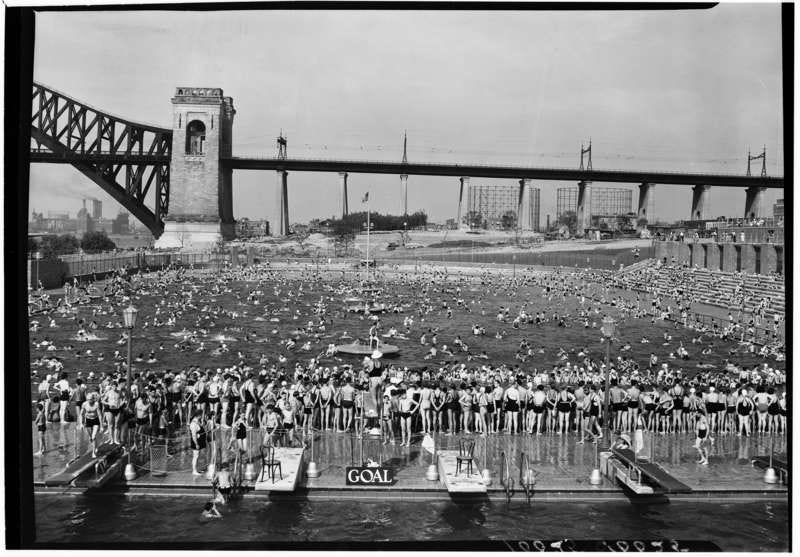 In the summer of 1936, eleven large-scale public swimming complexes opened across NYC to a rapturous response, with thousands attending each opening ceremony. The pools provided space for safe swimming, social gathering and much-needed recreation. These Olympic-size complexes, cataloged below, funded by the New Deal’s Works Progress Administration (WPA) and were marvels of engineering with the latest cleaning, heating and lighting technology. They created a new kind of public architecture, foregrounding recreation and gender integration in public space.